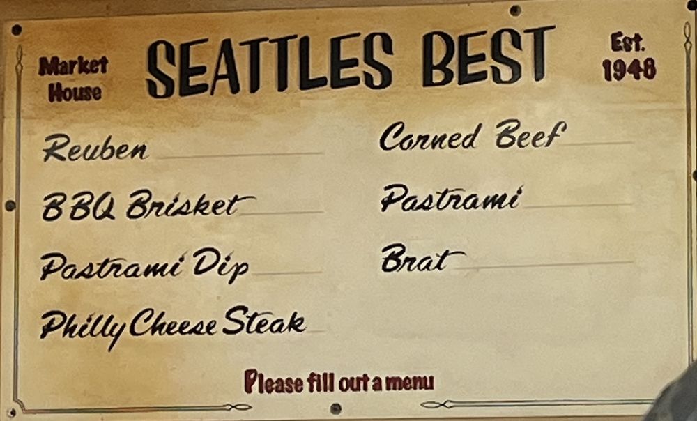 Welcome to Market House Meats, a celebrated deli nestled in Seattle's Denny Triangle since 1948. Famous for its classic sandwiches, the menu features standout items such as the Market House Grilled Reuben and the Corned Beef Sandwich, both perfect for satisfying your cravings. Customers rave about the generous portions and the rich flavors; the Reuben comes piled high with hot corned beef, Swiss cheese, sauerkraut, and topped with zesty 1000 Island dressing. Pair it with their Split Pea Soup for a cozy meal.